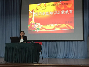 10月14日中午,护理学院辅导员段慧丹向徐汇校区2015级新生辅导员以及282名新生进行了入党启蒙教育报告。段慧丹通过播放《中国共产党与你一起在路上》,使同学们看到了一个与时俱进的中国共产党,随后从党情介绍,党员要求,入党流程,入党动机,入党申请书的撰写等方面为新生做了全面的入党基本知识的介绍。并对新生提出殷切期望,希望大家能够端正入党动机,提高思想认识,以实际行动积极向党组织靠拢。