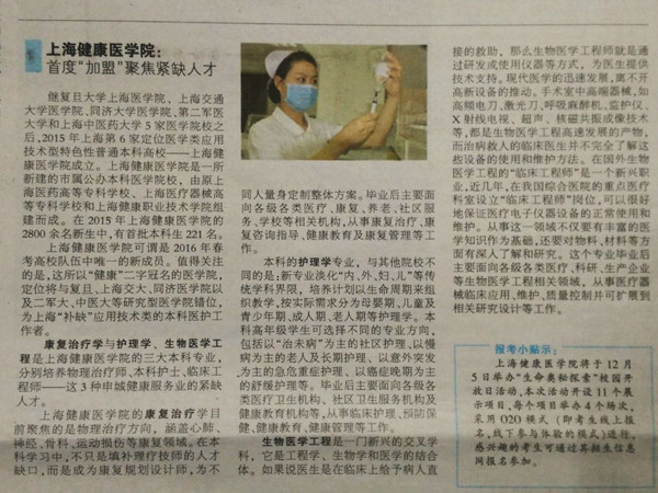 【上海中学生报】上海健康医学院:首度“加盟”聚焦紧缺人才