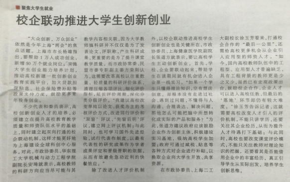 【东方教育时报】校企联动推进大学生创新创业