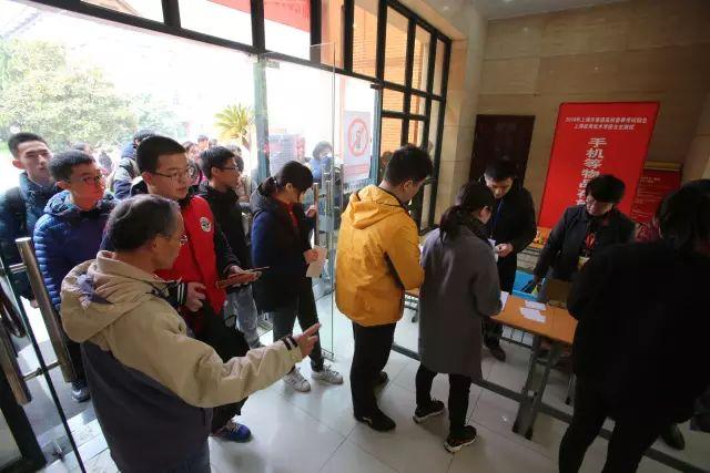 ▲上海应用技术学院考点,考生排队有序进入并验证。