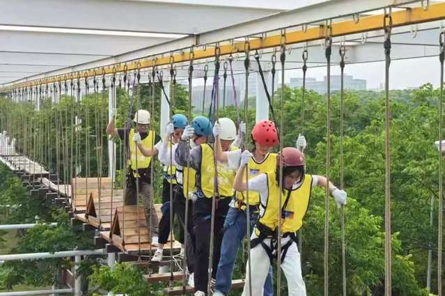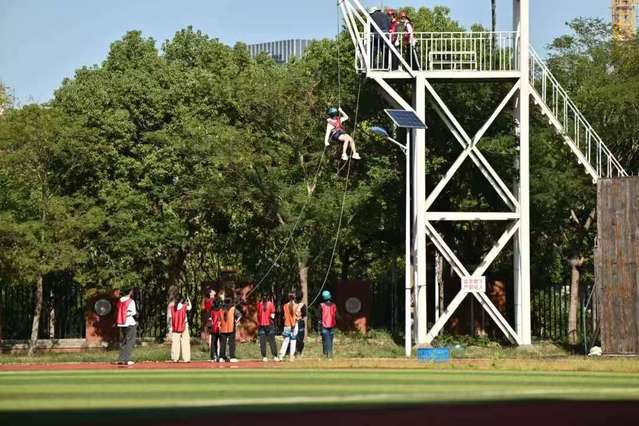 “能量打卡集市”由各高校分别设立主题摊位,通过心理知识问答、艺术疗愈体验、压力测试互动等丰富多彩的形式,为师生提供寓教于乐的心理健康知识普及,在体验的乐趣中帮助学生掌握心理调适方法。“素质拓展运动”环节则包括了攀岩、射箭、高空步道、速降、平台舟等特色项目,充分体现了“以体强心、身心融合”的工作理念,让学生在挑战自我、突破极限的过程中释放压力、增强自信。