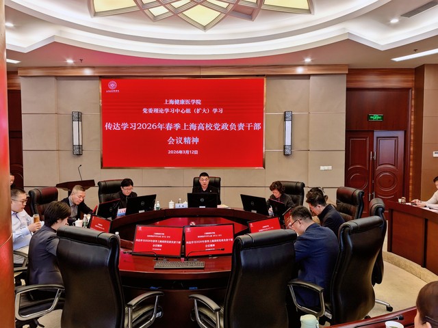 为深入学习贯彻《中共中央关于制定国民经济和社会发展第十五个五年规划的建议》《中共上海市委关于制定上海市国民经济和社会发展第十五个五年规划的建议》,学习2026年春季上海高校党政负责干部会议精神,3月12日下午,上海健康医学院在北苑1号楼110会议室召开党委理论学习中心组(扩大)学习会。校党委副书记、校长吴韬主持会议并作总结讲话,全体党委中心组成员、中层正职参加会议。