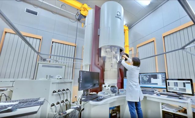 上海科技大学研究人员操作高分辨透射电镜