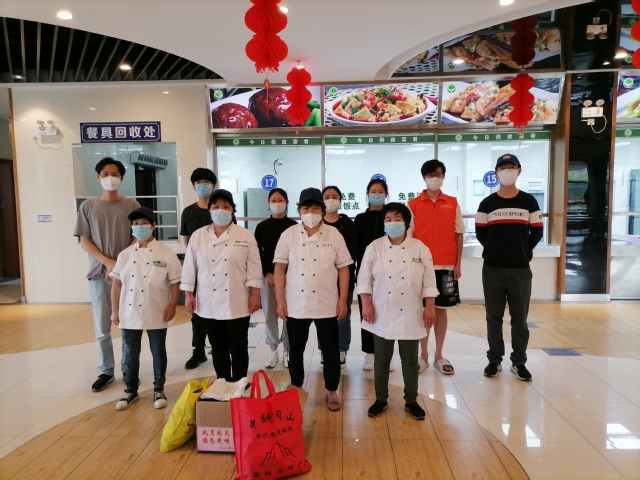 学校准封闭管理近一个月,天气从最初的“倒春寒”逐渐变得炎热起来。食堂阿姨、大叔没想到这么久不能出校,随身没有带换季衣物,一直穿着冬季的棉衣,心生烦恼。近日,新南苑综合办在走访慰问中了解这一情况后,第一时间在苑区例会上说明食堂工作人员的需求情况,医疗器械学院辅导员王海峰和药学院辅导员钟旭芬两位老师主动请缨,迅速组织捐赠衣物。