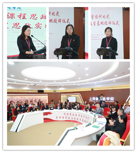 为深入贯彻落实全国高校思想政治工作会议精神,全面推进学校由“思政课程”走向“课程思政”的教育教学改革,10月25日学校在图书馆组织举行课程思政教学设计比武暨课程思政实践教学基地授牌仪式。校党委书记郑沈芳、党委副书记于莹、副校长唐红梅出席会议。学校诚邀《思想道德修养与法律基础》上海分教指委主任委员、复旦大学高国希教授,上海市高校思想政治理论课教学指导委员会副主任委员、上海交通大学陈锡喜教授,上海外国语大学马克思主义学院院长、全国涉外院校思政协作会会长、中国南亚学会理事、上海毛泽东思想研究会理事赵鸣歧教授,上海电机学院马克思主义学院院长何小刚教授,上海中医药大学基础医学院张黎声教授,我校马克思主义学院院长孙玉良教授出席会议并担任评委。学校人事处、教师工作部、教务处、图书馆等职能部门相关负责人及各学院教学副院长、教师代表共60余人到场参加,教务处处长张梅主持会议。