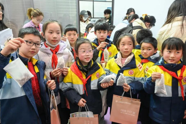 学生在活动上体验中药包制作