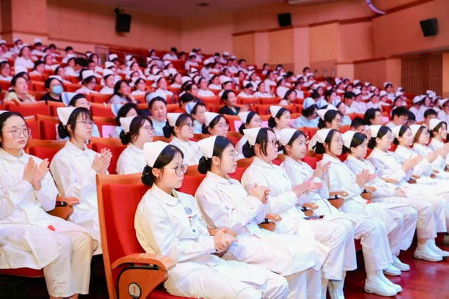 在现场,庹焱与上海交通大学医学院附属仁济医院护理部主任奚慧琴、复旦大学附属华山医院护理部原主任曹艳佩、上海交大医学院附属瑞金医院护理部副主任查庆华等10位护理前辈,共同为即将走上实习岗位的400多名护生代表授帽,并将象征着生命之光的红烛传递到她们手中。作为第二届职业技能大赛国赛金牌获得者,身着胸前带有国徽的世赛领奖服,曾小桉也激励同学们用专业与温度守护生命,以技能为翼,以仁心为灯,为健康中国贡献力量。