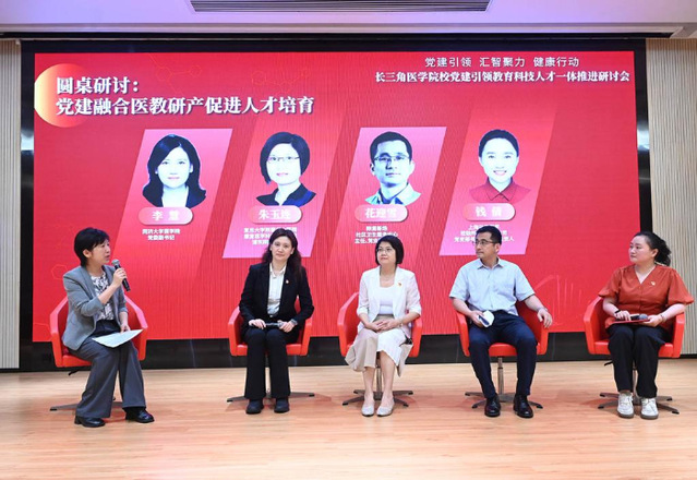 开幕式上,十所医学院校代表共同启动“健康赋能·长三角医学院校党建牵手辐射行动”。随后,研讨会通过主旨报告、专题发言、圆桌研讨等方式,对党建引领教育科技人才一体推进进行深入探讨。