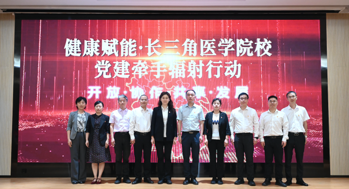 开幕式上,十所医学院校代表共同启动“健康赋能·长三角医学院校党建牵手辐射行动”。上海健康医学院校长吴韬指出,要以此为契机,铭记为党育人初心,扛起健康中国使命,点燃融合创新引擎,同心、同向、同行,以更高站位、更强担当推动长三角医学教育创新发展。