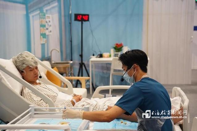 教练团队为其量身定制训练计划,为精准把握患者需求,他利用周末到病房与患者深度交流,倾听他们的心声;为优化男性照护者的服务特质,体现出更多的温暖和力量,在国外留学的师姐通过线上指导帮他打磨细节;为调整沟通时的微表情,他对着镜子反复练习神态与语气;为提升英语表达精准度,他每晚逐帧分析训练视频、推敲口语细节;为确保赛场稳定发挥,60天内针对12个案例完成上百次模拟展示与3轮全流程考核。金牌与荣耀背后,是无数个日夜的“错题式”打磨,最终换来了国赛领奖台上稳稳举起金牌的高光时刻。