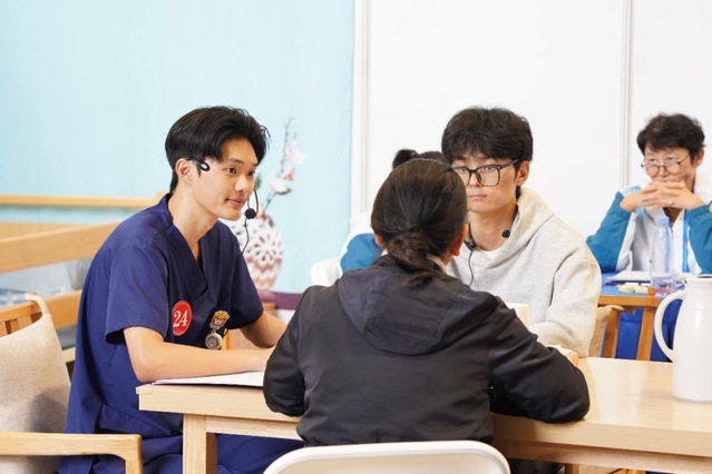 不同场景的照护中,闵思达的专业与温情更见细节:面对痴呆患者,他以低沉温暖的声线轻声安抚,帮助患者从紧张幻觉中回归现实世界,给予患者满满的安全感;照料截肢糖尿病患者时,他用坚定的鼓励话语帮患者重塑生活希望;在应对哮喘发作预防宣教时,他结合自身游戏经历与16岁小患者完美共情,让宣教更具感染力;在面对突发扭伤情况时,他凭借果断而娴熟的专业照护操作快速缓解患者不适。3天赛程、6个案例,他以“力量之刚”与“细腻之柔”,诠释了新时代男护士的独特的魅力和别样风采。