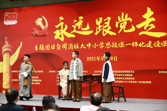 情景党课环节,来自周浦镇学区党建联盟的学生代表精彩演绎了舞台剧《极光》。