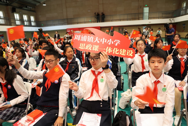 接着,于莹同与会领导嘉宾共同按下启动键,标志着周浦镇大中小学思政一体化建设课程菜单正式发布。