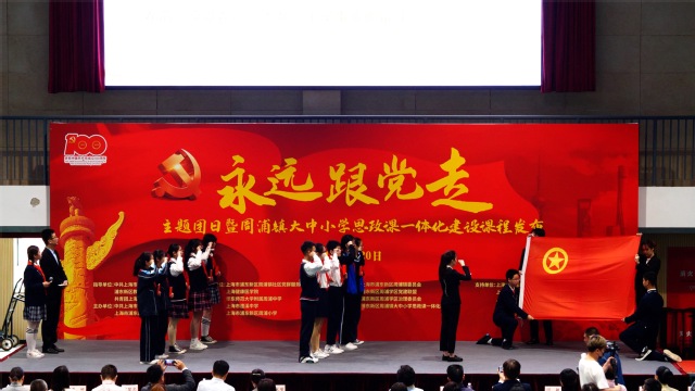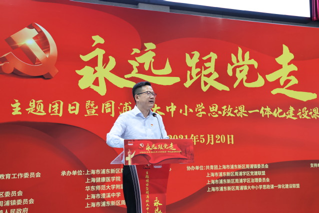 5月20日上午,“永远跟党走”主题团日暨周浦镇大中小学思政一体化建设课程发布活动在上海市澧溪中学周阳校区体育馆举行。校党委书记郭永瑾、党委副书记于莹、周浦镇党委书记吕东胜、浦东新区教育工作党委副书记毛力熊、浦东新区教育工作党委委员、教育局副局长陈强等领导出席活动,上海健康医学院与周浦镇10所高中、初中、小学师生代表100余人参加活动。