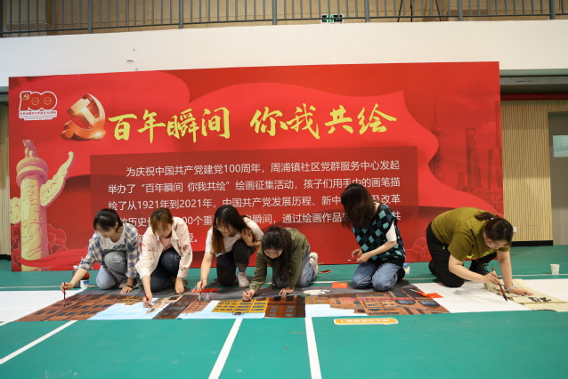 活动伊始,百名青年党员与共青团员、少先队员代表,现场共绘百米长卷,拉开了活动的序幕,他们用画笔描绘对中国共产党的热爱、对祖国的眷恋。