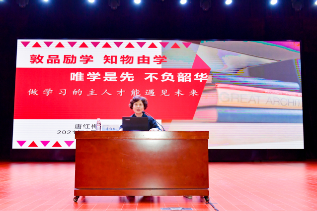 唐红梅从三个方面展开学习指导,首先“敦品励学:志存高远 领航青春”,希望医学生们要有仁爱之心、砥砺品德、发奋学习;心怀大爱,守望初心,做医德高尚的仁者和坚定专业的医者。其次要“知物由学:主动求学 奋力前行”,希望同学们要主动学习,掌握开启未来的钥匙;主动适应,拥有把握未来的能力,同时,唐红梅还介绍了八种目前国际上较为先进的大学学习方式和课堂教学形式。最后是“唯学是先:以学为径 勇攀高峰”,她从疫情带给我们的启示谈起,希望同学们要具备放眼世界的能力,做具有全球视野的新青年;创新思维能力,做未来世界的改造者;跨界思维能力,做多学科知识的研究者;信息传播能力,做健康中国的促进者。最后,唐红梅希望同学们不负大学美好时光,让将来的你感谢现在奋斗的你!