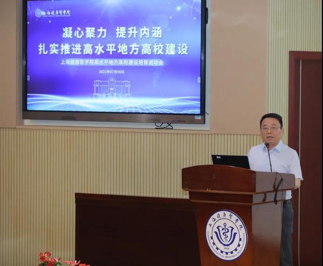 为加快推进高水平地方高校建设培育进程,高质量完成各项建设任务,7月8日上午,上海健康医学院高水平地方高校建设培育启动会在北苑200人报告厅召开。校党委书记郭永瑾主持会议,全体校领导出席会议,职能部门主要负责人、二级学院(部、中心)班子成员、教研室主任、学科带头人、骨干教师、附属医院科教处负责人及项目负责人参加启动会。