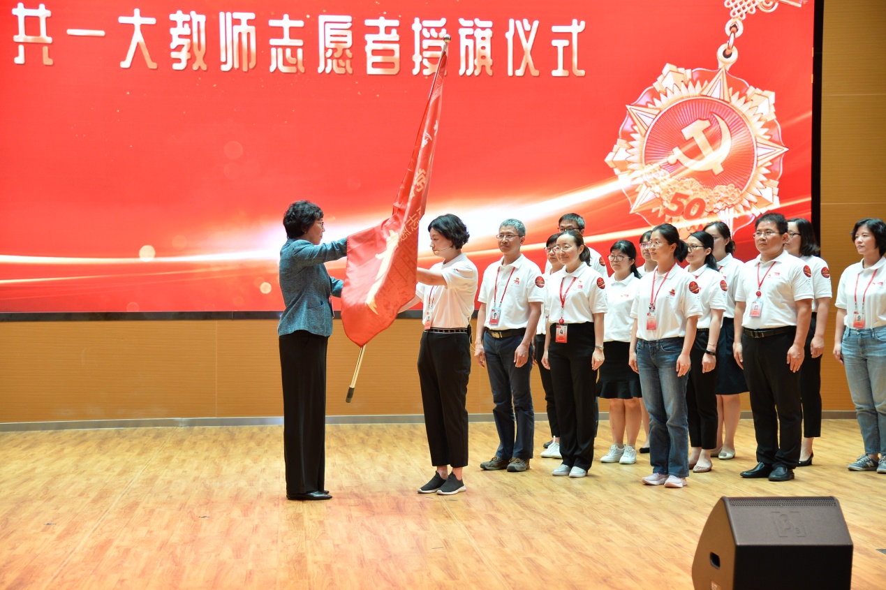 为进一步弘扬上海健康医学院志愿精神、弘扬党的诞生地伟大精神,我校成立中共一大会址教师志愿者队伍,于莹为志愿者队伍授旗,志愿者们声声誓言,再次表达了共产党员永远跟党走、奋进新征程的信心和决心。