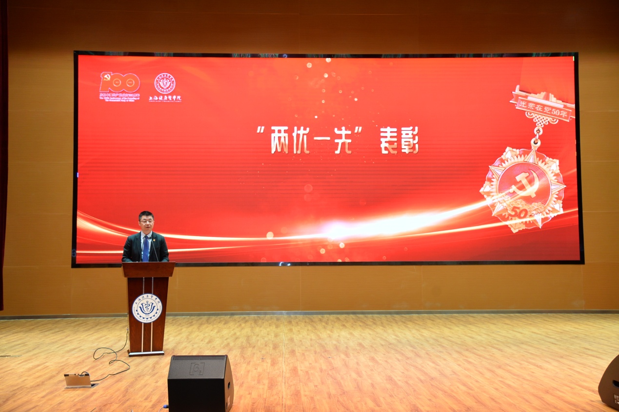 伴随着“光荣在党50年”纪念章的颁发,老同志们也将新时代使命的接力棒移交到青年人手中。在学校改革发展的历程中,涌现出一批批优秀党务工作者、优秀共产党员、基层党组织、先进基层党组织,吴韬宣读上海健康医学院2021年“优秀党务工作者、优秀共产党员和先进基层党组织”名单,激励广大党员以先进为榜样,勤奋工作、敢于奉献,以强烈的事业心和责任感做好本职工作。大会对20名优秀党务工作者、74名优秀共产党员、11家先进基层党组织进行了表彰,全体校领导颁奖。